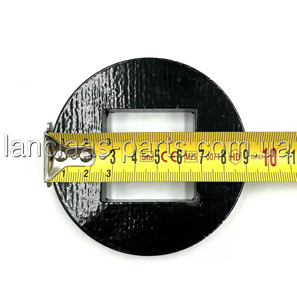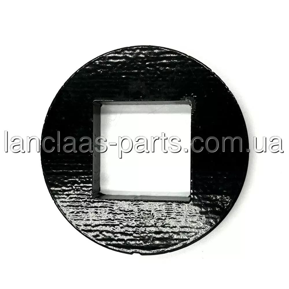 Має вигляд круглої пластини з квадратним отвором.